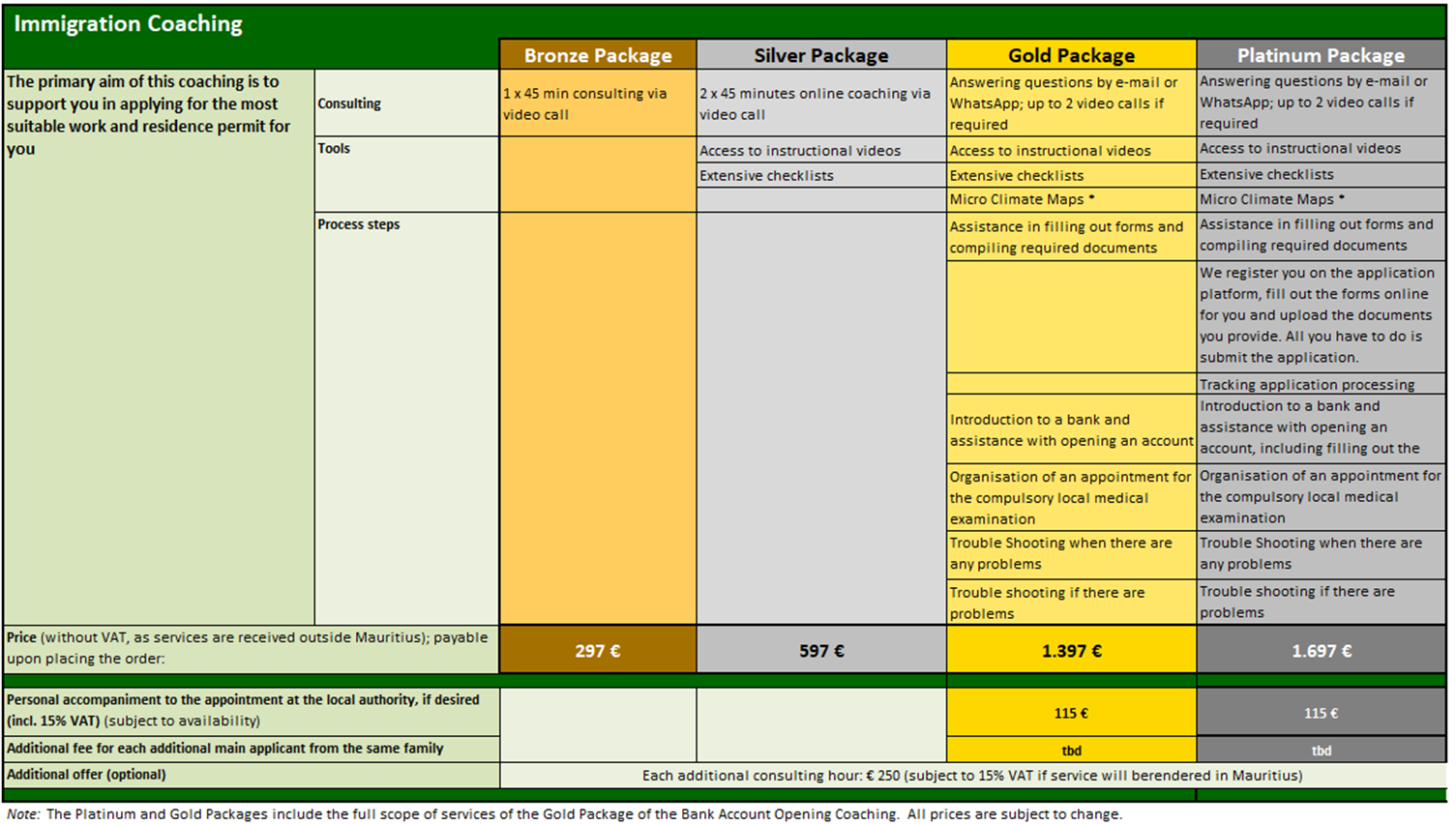 When consulting on immigration and relocation to Mauritius, I offer the following packages: